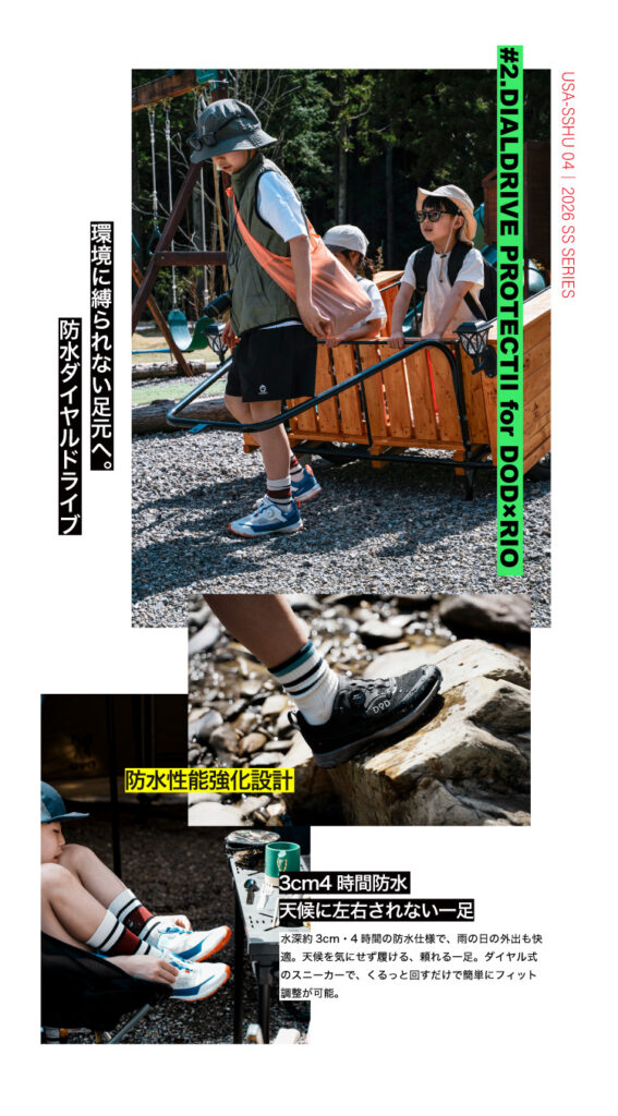 撥水生地を採用し、川遊びやアウトドアにも最適です!