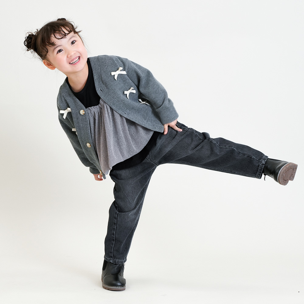 リボンやラメチュールでかわいさをプラスしたモノトーンコーデ