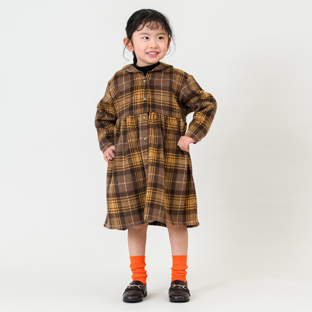 秋らしいチェックにセーラーカラーがかわいい♩ちびネックTで首元もあったか